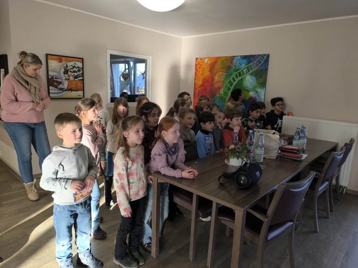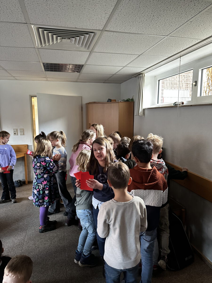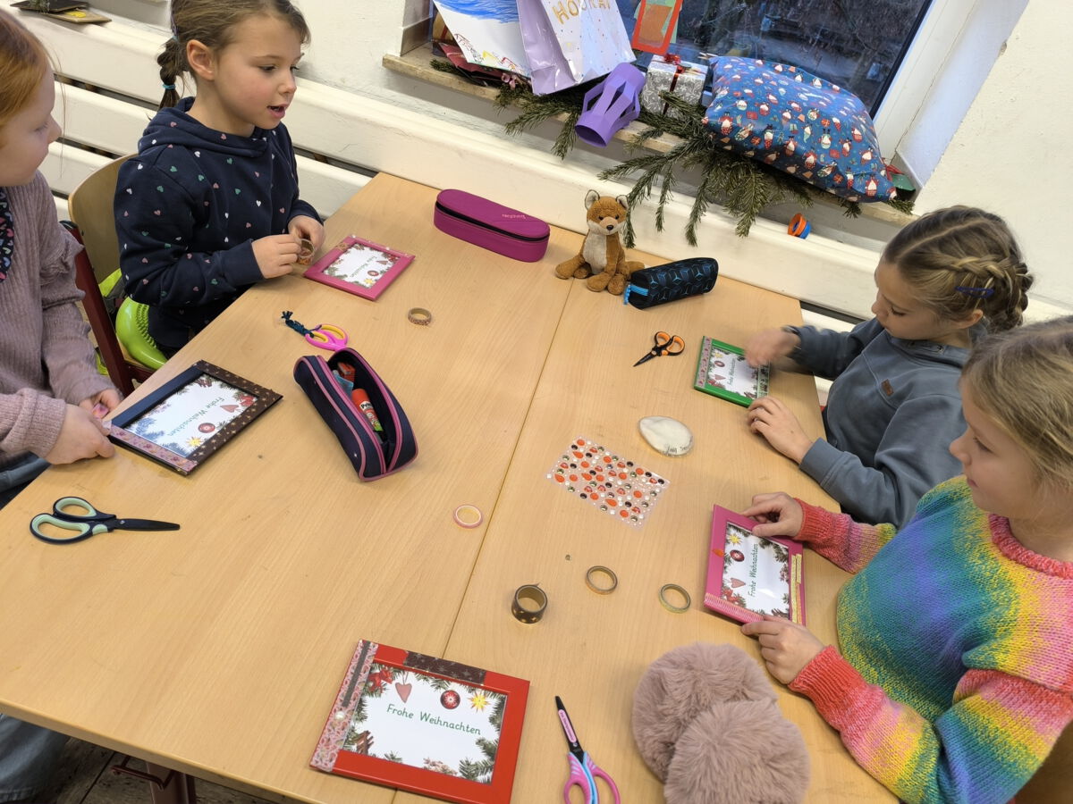 Die Klasse 1b bastelte liebevoll Weihnachtskarten und verteilte diese an die Nachbarn der Schule. Die Klasse 2b war im evangelischen Kindergarten „Unterm Regenbogen“ zu Gast und präsentierte den Vorschulkindern eine kleine Weihnachtsaufführung mit Liedern und Gedichten, bevor draußen gemeinsam gespielt wurde. Die Klasse 4b besuchte den DRK-Kindergarten Kunterbunt, wo gemeinsam gebastelt, gesungen und gespielt wurde. Zudem verteilten die Kinder selbstgebackene Plätzchen an die Kinder.